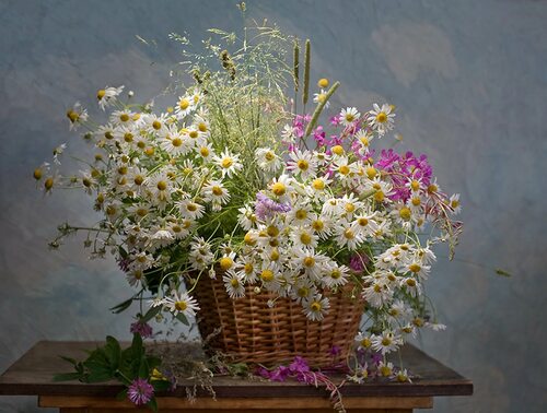 Полевые цветы в корзинке