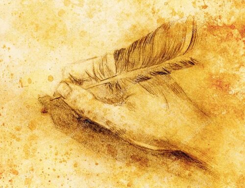 - Фон с пером на темном фоне, добавляющий загадочности и интриги.