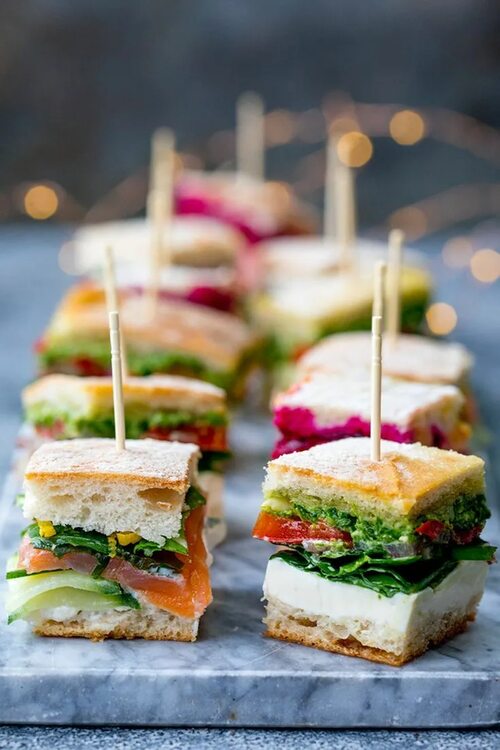 Некоторые популярные варианты начинок для мини бутербродов: