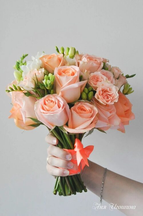 Букеты невесты в персиковом цвете могут быть разнообразными и уникальными. Вы можете выбрать классический букет из роз или предпочесть комбинацию различных цветов. Персиковый цвет прекрасно сочетается с другими пастельными оттенками, такими как бледно-розовый или лавандовый, что позволяет создать нежный и романтичный образ.