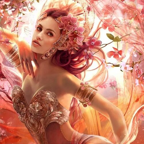 Девушка с цветами фэнтези