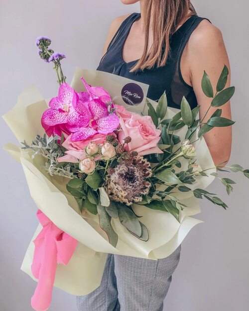 Для модниц и любительниц стильных образов подойдет модный букет. Он включает в себя необычные комбинации цветов, акценты из экзотических растений и интересные детали, которые подчеркнут индивидуальность и стиль вашей девушки.