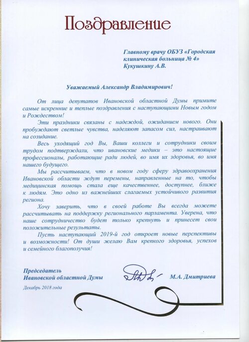 Поздравления от главного