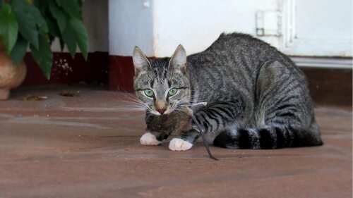 Кот поймал мышь