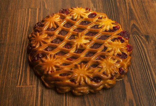 3. Пирог "Вишневый рулет". Для приготовления этого пирога сначала делаем тесто из муки, сахара, яйца и дрожжей. Затем раскатываем его в прямоугольник и намазываем вишневым вареньем. Скатываем рулет и выпекаем в духовке до готовности.