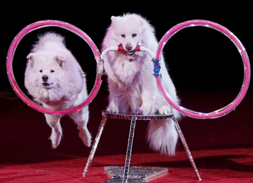 Собаки - это одни из самых умных животных. Они способны быстро усваивать команды и выполнять сложные задания. В цирке они проходят длительную тренировку, чтобы научиться различным трюкам и выступать перед публикой. Их способность к обучению и желание угодить своим хозяевам делает их прекрасными артистами циркового шоу.