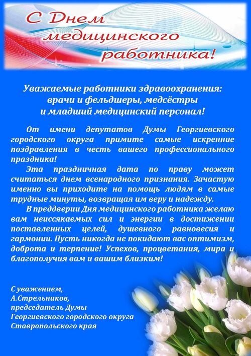 Официальные поздравления с Днем медработника