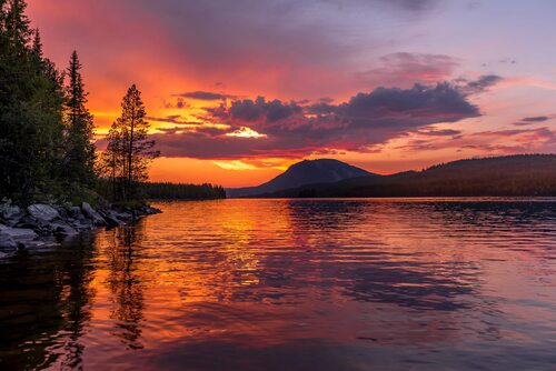 Горы озеро лес закат