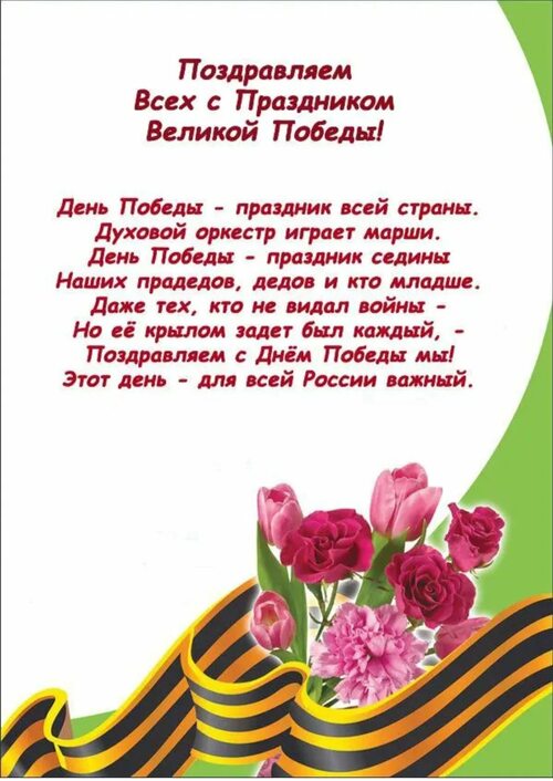 День Победы - важный праздник, который отмечается каждый год 9 мая. Этот день посвящен памяти и благодарности ветеранам Великой Отечественной войны, которые сделали невозможное возможным и принесли мир и свободу нашей стране.