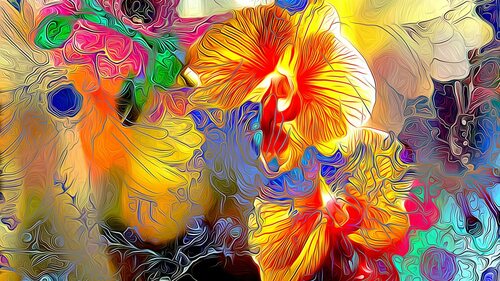 Каждое фото погружает вас в мир ярких оттенков и необычных форм. Абстрактные цветы представлены в самых разных вариациях - от геометрических до органических, от ярко-красных до нежно-голубых.