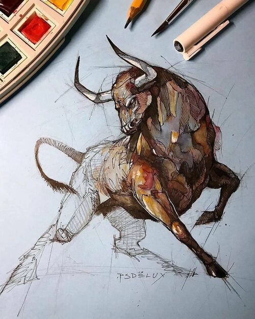 Бык в различных культурах символизирует силу, энергию и могущество. Он часто ассоциируется с богатством, процветанием и плодородием. Художники используют свою творческую фантазию, чтобы передать все эти аспекты через свои произведения.