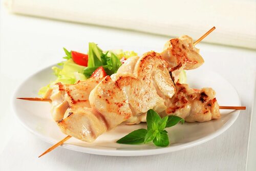 7. Готовые шашлычки подайте с соусом и гарниром по вашему выбору.