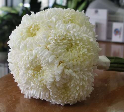 Белые хризантемы - это символ чистоты и нежности. Нет ничего более восхитительного, чем видеть невесту, держащую в руках букет из этих изящных цветов. Белые хризантемы могут быть использованы как в единственном виде, так и в сочетании с другими цветами.