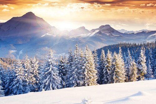 Снежный лес и горы