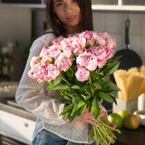 Пионы - это одни из самых популярных цветов, которые всегда ассоциируются с женственностью, красотой и нежностью. И что может быть более прекрасным, чем девушка, держащая в руках букет из этих прекрасных цветов?