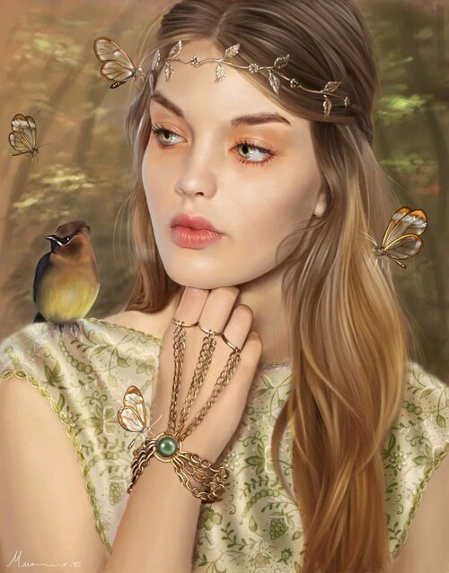 Птицы, изображенные на картинах "Красивая девушка арт с птицей", придают образу девушки таинственность и легкость. Они символизируют свободу и природную грацию, привносят в общую композицию чувство движения и взлета. Каждая птица неповторима и уникальна, словно олицетворяя индивидуальность и характер девушки.