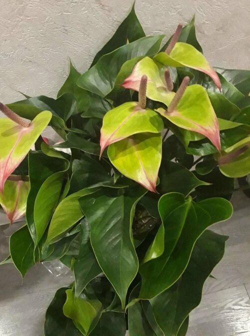 Антуриум Ягуар Грин представляет собой растение с большими, блестящими зелеными листьями и яркими цветками, которые могут иметь различные оттенки зелени. Этот цветок является настоящим украшением для любого интерьера.