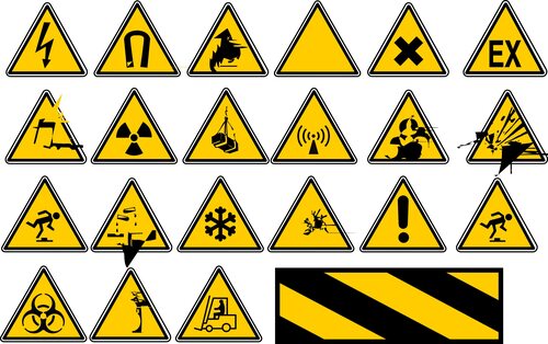 Знаки предупреждения на картинках используются для предостережения о возможных опасностях, например, скользких поверхностей, острых предметов, неровных дорог и прочих факторов, которые могут вызвать травму или несчастный случай.