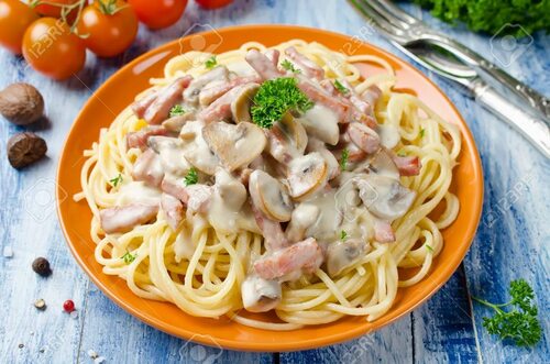 Рецепт спагетти с грибами в сливочном соусе