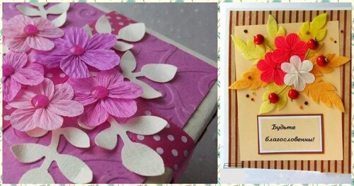 Идеи для создания открытки с цветами из гофрированной бумаги