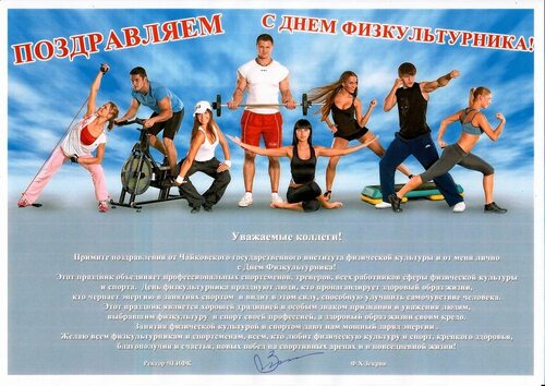 Учителя физкультуры отмечают свой профессиональный праздник – День физкультурника. В этот день можно поздравить своего учителя и пожелать ему дальнейших успехов в работе, новых спортивных достижений и благополучия. Добавьте к поздравлению фотографию, которая символизирует здоровый образ жизни и активность.