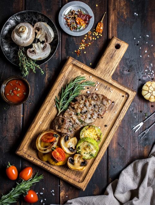 Кроме того, деревянная доска может быть использована как основа для сервировки горячих блюд, таких как стейк или рыба. Она сохраняет тепло и долго держит блюдо горячим.
