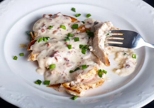 6. Подавайте куриное филе в сливочном соусе6 горячим, посыпав свежей зеленью.