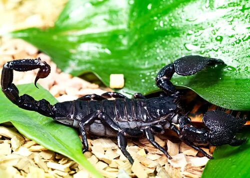 Императорский Скорпион (Pandinus imperator) - один из самых крупных и впечатляющих видов скорпионов. Он обладает потрясающей внешностью и мощными клешнями, которые использует для захвата своих жертв. Императорский Скорпион привлекает внимание своим ярким окрасом, который может быть от коричневого до черного с красными отметинами.
