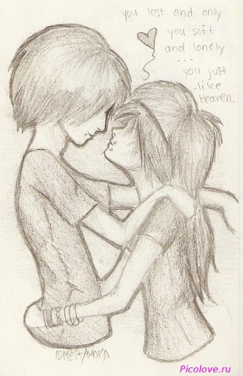 Попробуйте нарисовать влюбленную пару, держащуюся за руки или целующуюся. Выразите свои чувства через рисунок.