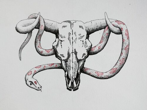 Многие художники используют череп быка как символ силы, смелости и борьбы. Он также может быть связан с мистическими и духовными аспектами, представляя собой переход от жизни к смерти или вечную жизнь.
