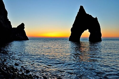 Скала золотые ворота Коктебель - одно из самых известных природных достопримечательностей Крыма. Это уникальное природное образование, которое представляет собой огромные валуны, расположенные на берегу Черного моря.