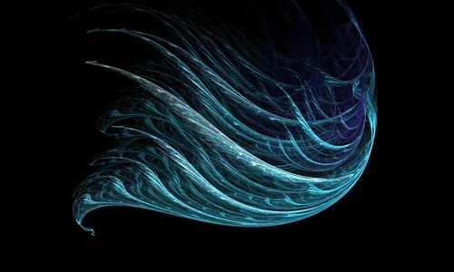 На втором фото мы видим ветер, изображенный в виде абстрактных вихрей и спиралей, создающих ощущение вращения и динамики.