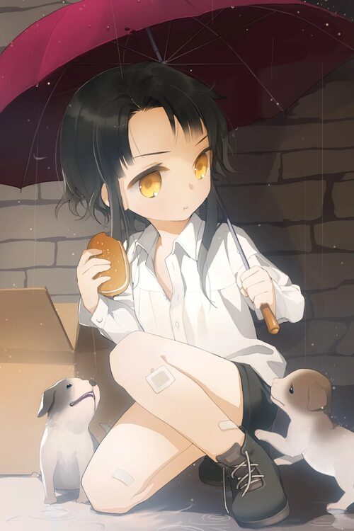 Аниме девушка сидит на корточках