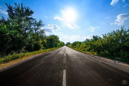 Здесь мы видим, как светлый фон дороги подчеркивает красоту окружающей природы. Пейзаж становится еще более привлекательным благодаря ярким оттенкам и отражениям.