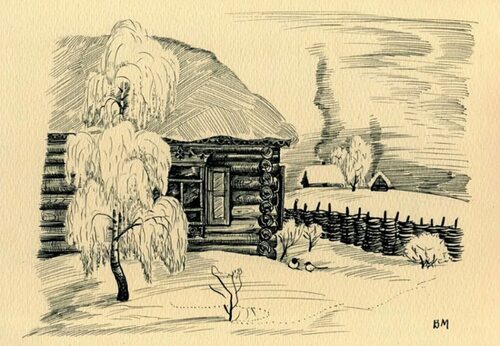 Дом с березой рисунок